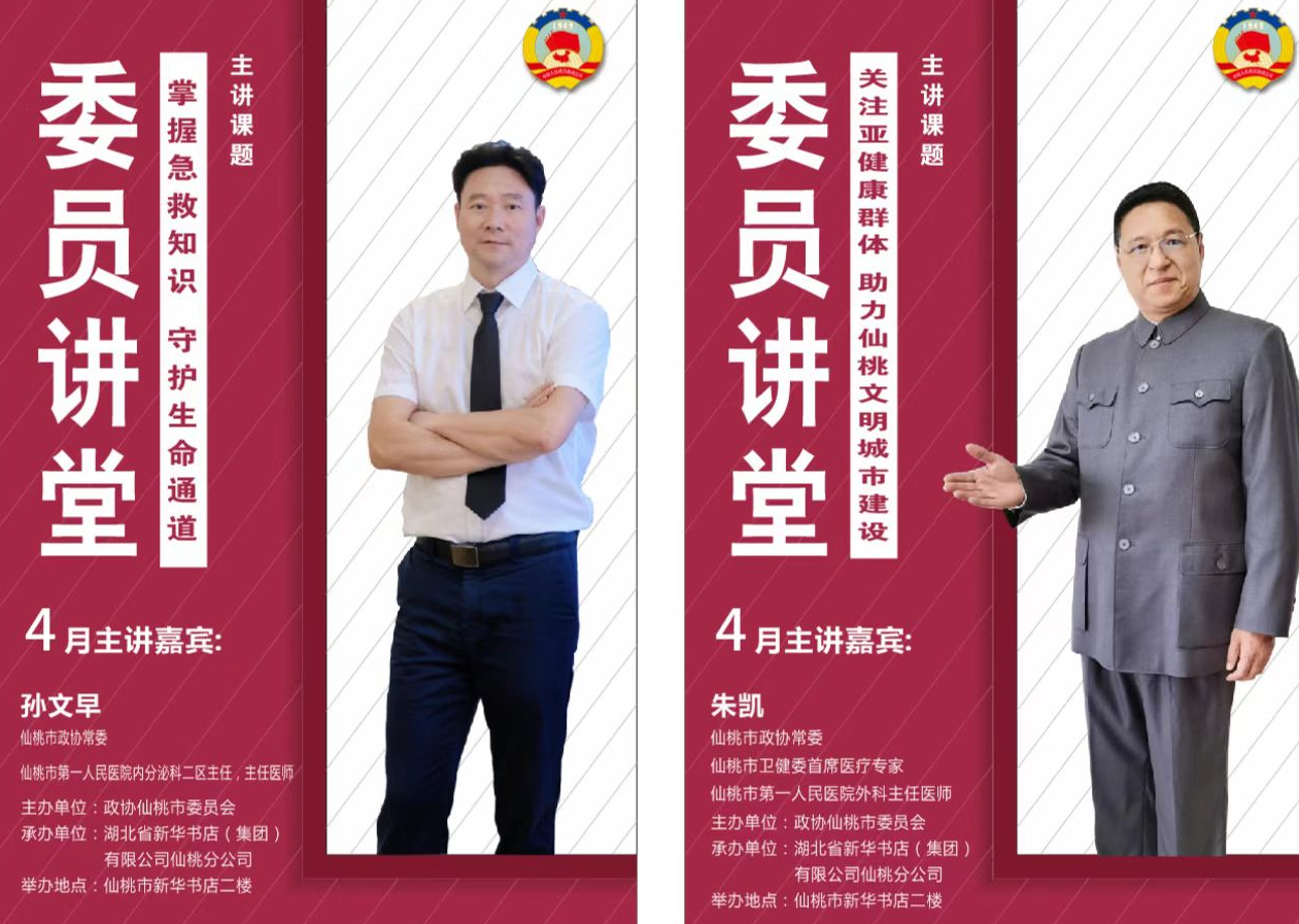 市政协常委、市卫健委首席医疗专家、市第一人民医院外科主任医师朱凯,市政协常委、市第一人民医院主任医师、内分泌二区主任孙文早分别专题授课。两位专家分别以《关注亚健康群体 助力仙桃文明城市建设》《掌握急救知识 守护生命通道》为题,用鲜活生动的案例、风趣幽默的语言,作了健康知识专题辅导。